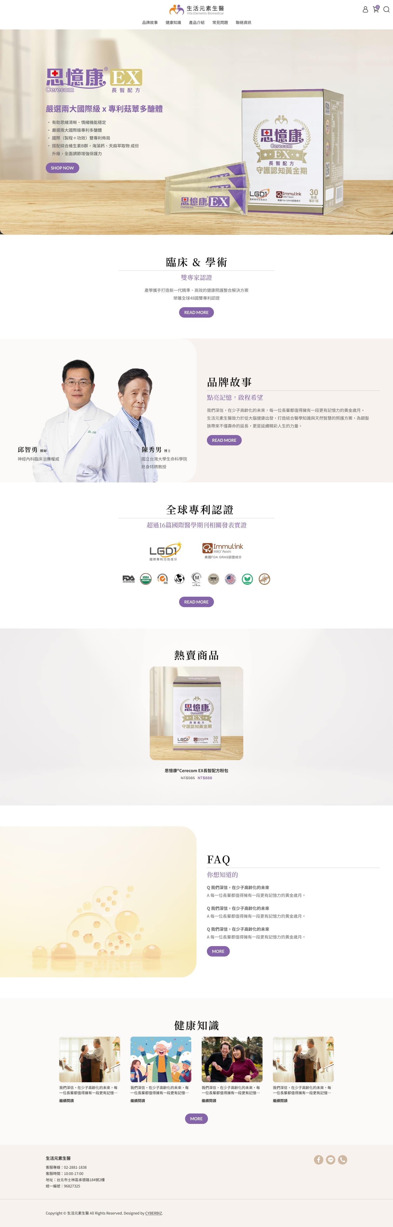 由臨床第一線的神經內科醫師與學術領域的頂尖教授,聯手研發的保健食品,運用網站來推廣創辦人的理念與思憶康EX品牌。